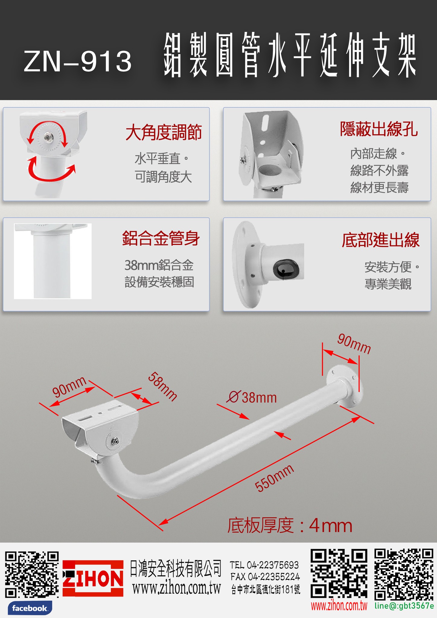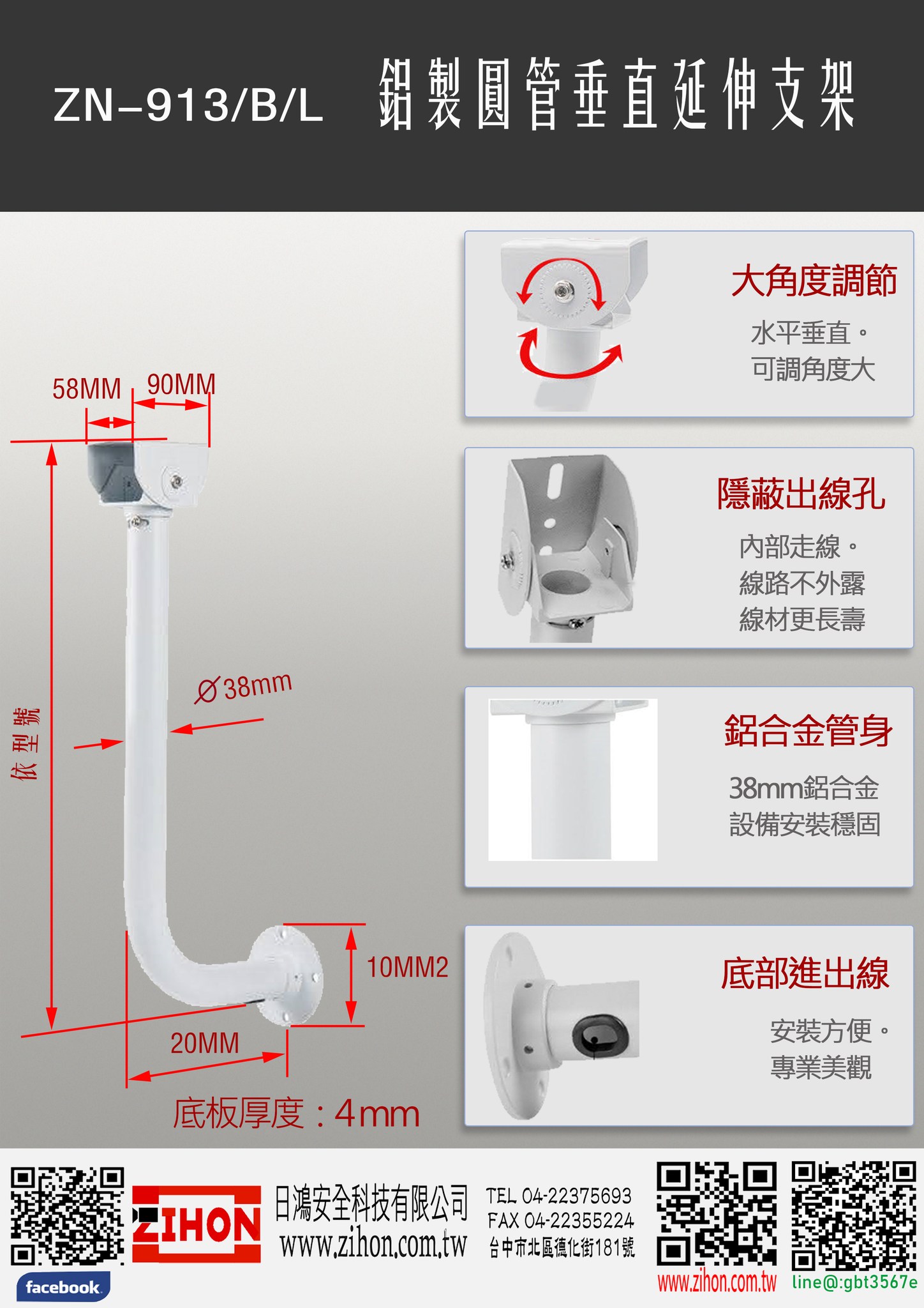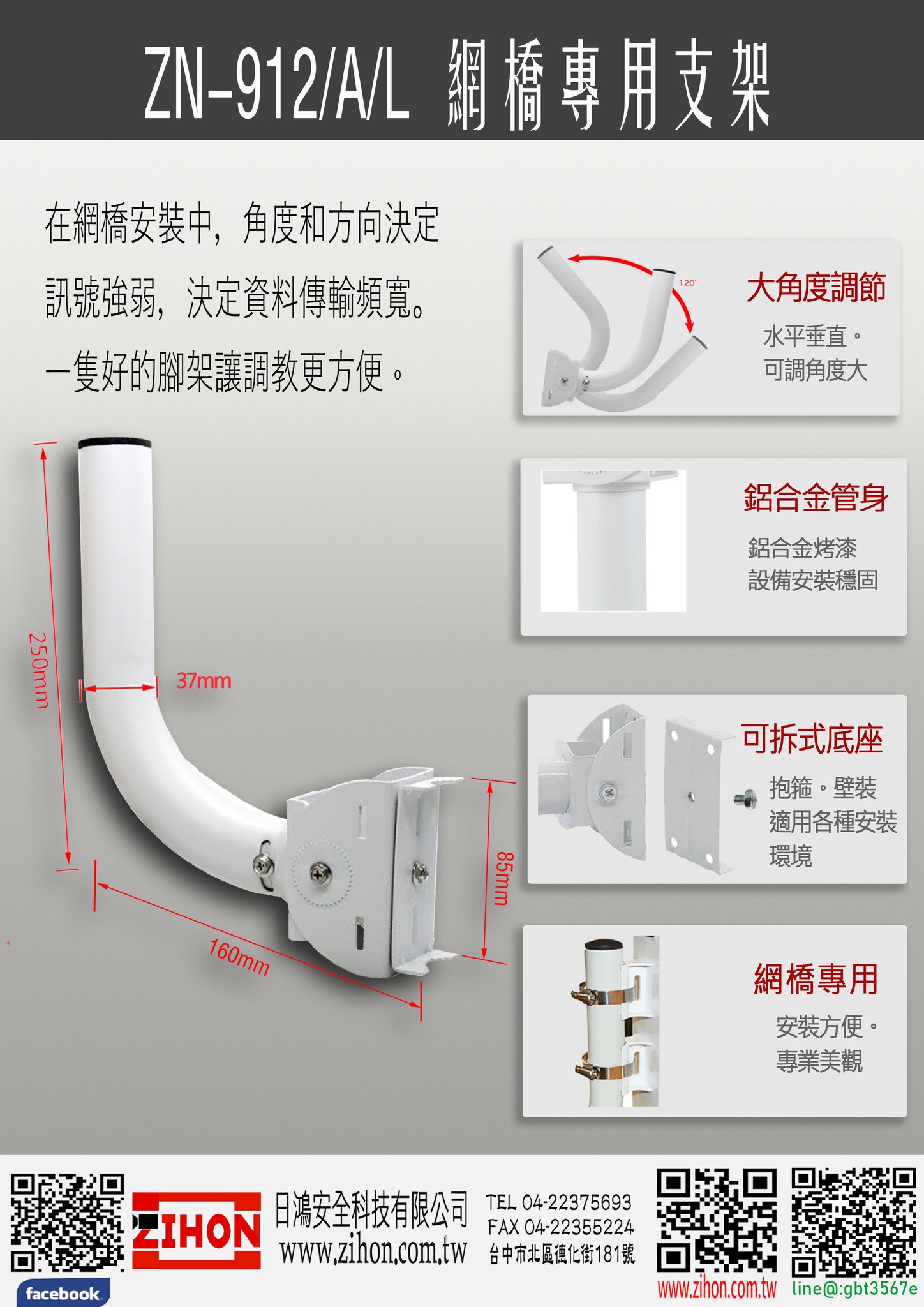 面對各式安裝環境,如何讓攝影機能拍到關鍵畫面,才是真正專業的考驗,別怕!有各式各樣的支架來輔助,只想不到,沒有辦不到。