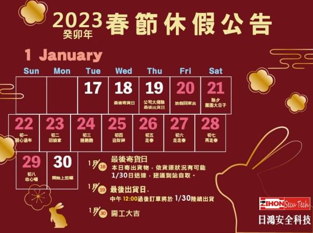 2023 春節休假公告