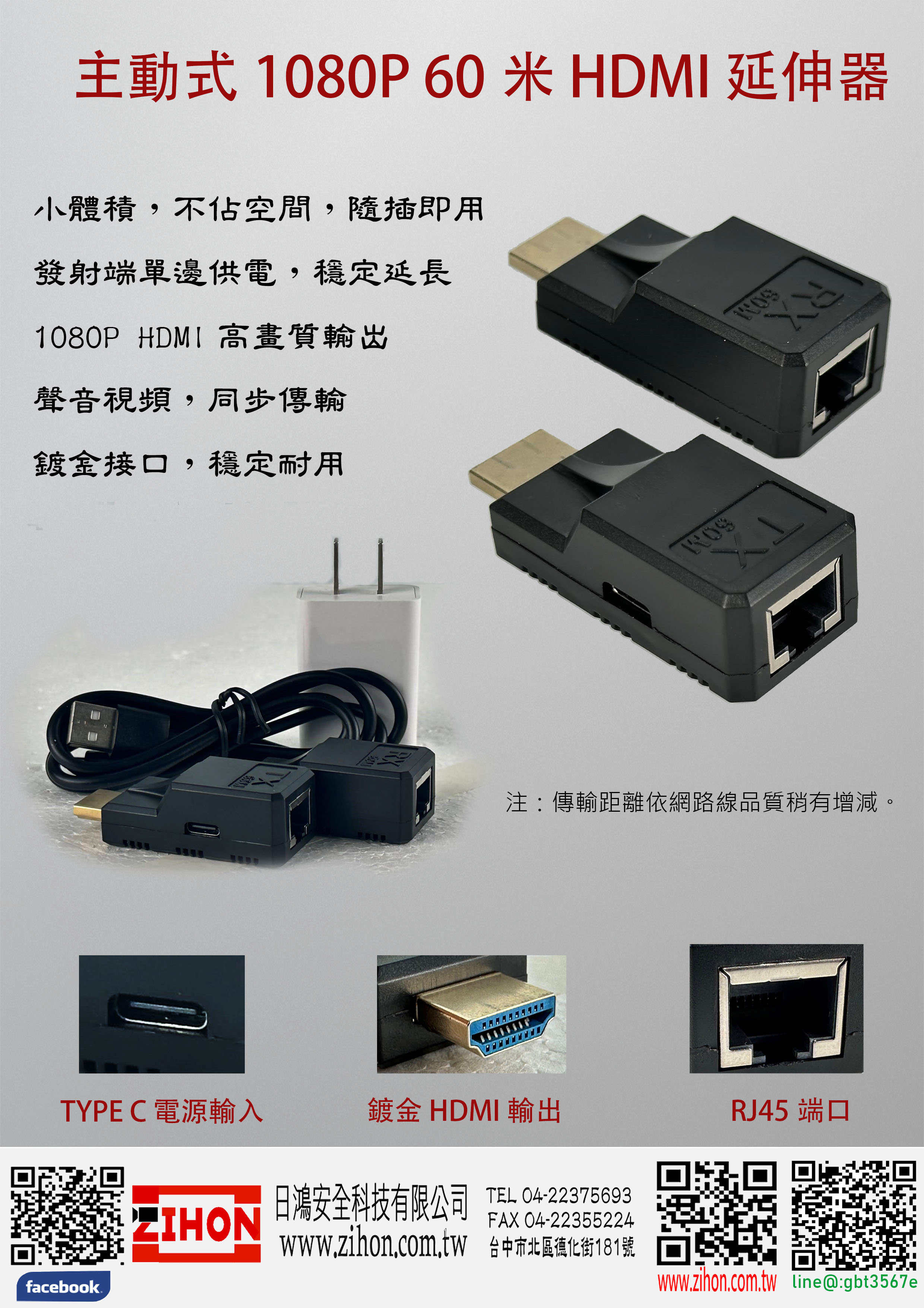【主動式1080P 60米 HDMI 延伸器】