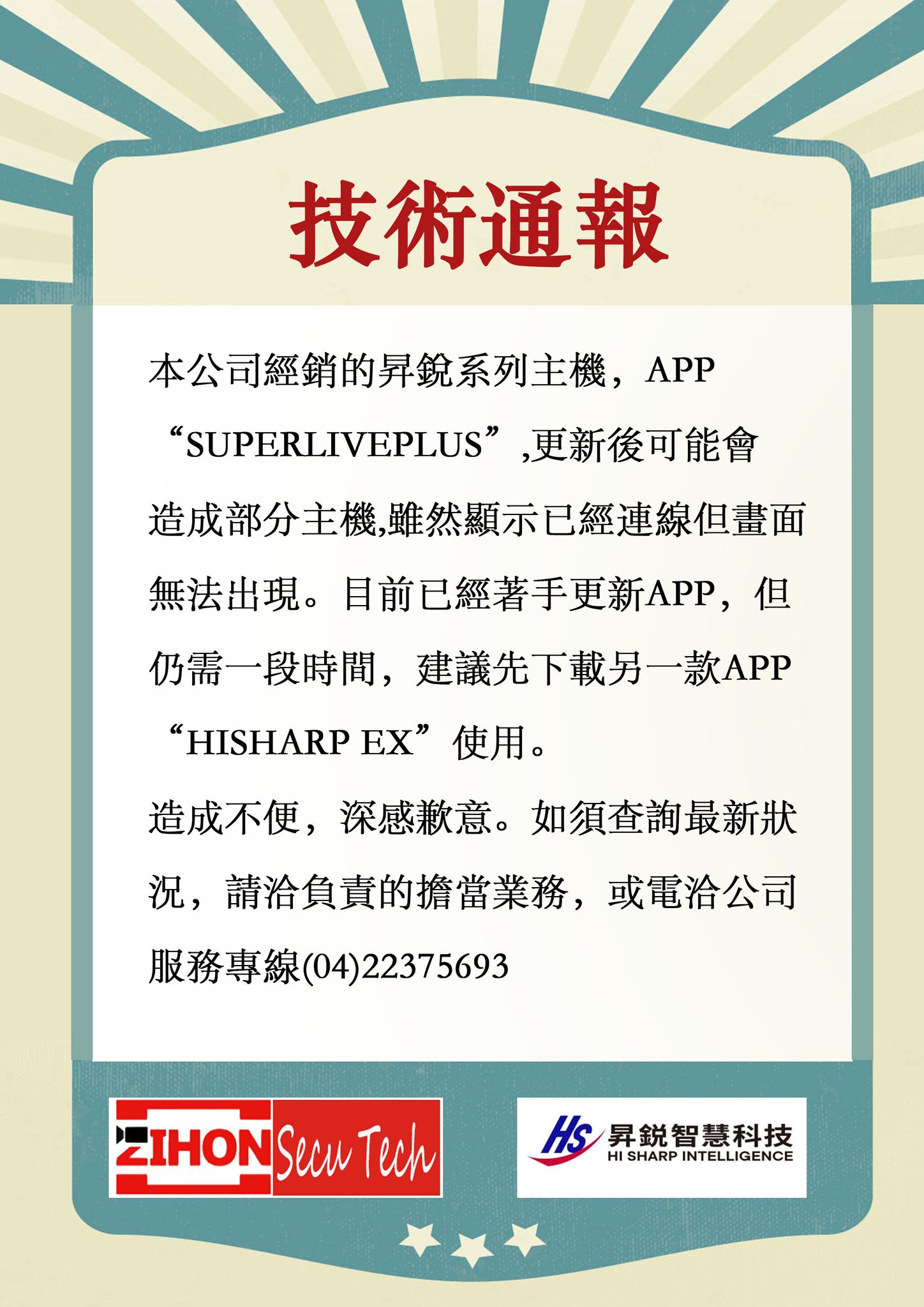 最近客戶反映,昇銳主機手機APP "SUPERLIVEPLUS" 更新後,有些主機狀態雖然顯示連線,但是畫面卻是出不來。