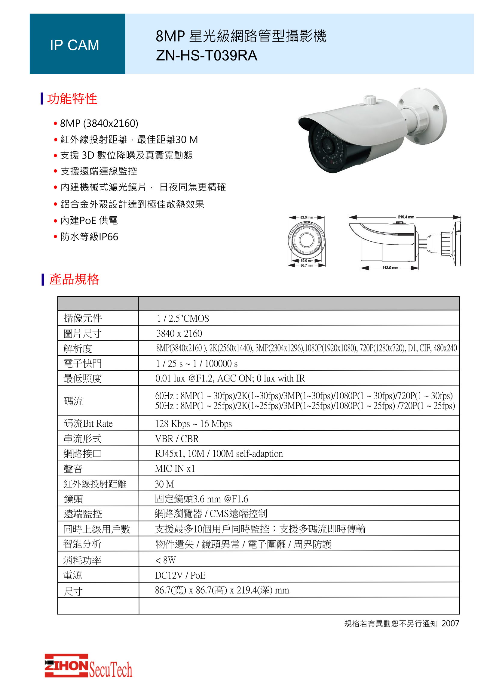 8MP紅外線網路攝影機-變焦