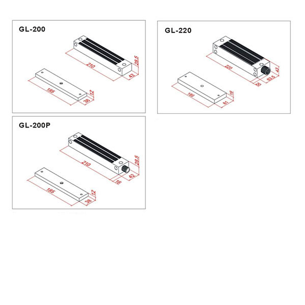 GL-220:185mm(長) x 61mm(寬) x16mm(深) - 重量:GL-200:2300g / GL-200P:2300g / GL-220:4900g