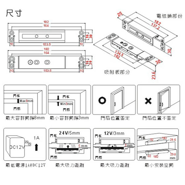 - 承受最大剪力1200Kg(2600磅),吸力最大距離可達5mm(@24V)。