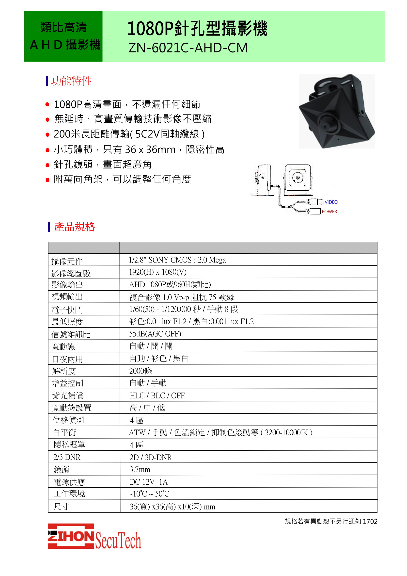 型號:ZN-6021C-AHD
